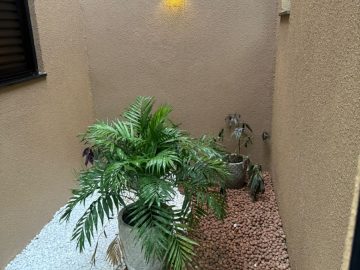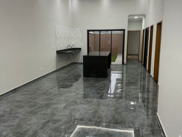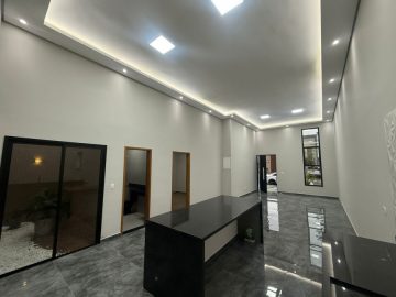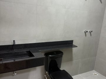 Acabamento: Laje, porcelanato, pé direito com 5 mts, vasos sanitários preto,, mármore esculpido na cozinha e nos lavabos dos banheiros, dormitório da suíte com persiana elétrica, portas e janelas da frente em alumínio, com abertura digital da porta, bancada da cozinha com 2 mts em mármore, tubulação e fiação preparada para ar condicionado e boiler.