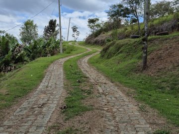 Acesso Interno: A estrada da entrada até a casa é calçada, facilitando o deslocamento.