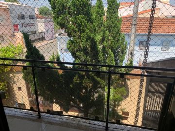 Suíte solteiro, acesso a sacada com vista para a área de lazer,