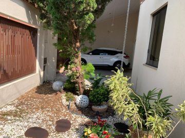 Jardim de entrada e garagem para 2 autos com acesso para área de serviço,