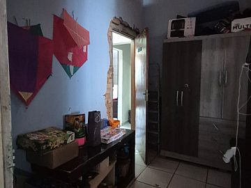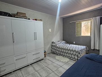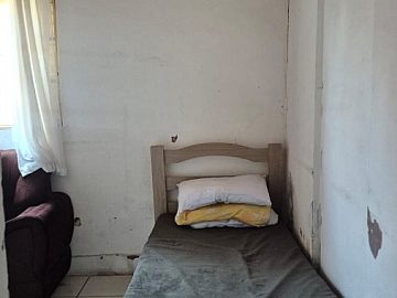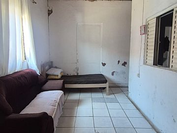 A casa é antiga mas o telhado foi trocado e os cômodos foram revestidos de pvc.