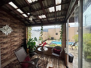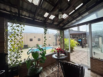Área de serviço coberta com fechamento em vidro blindex, unindo funcionalidade e estética.