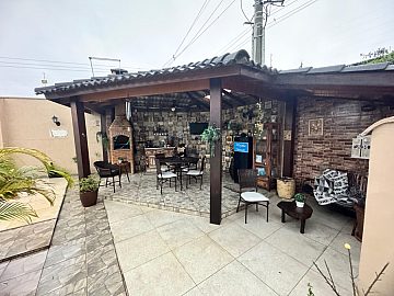 Área gourmet com churrasquiera e piscina IGUI com sistema de aquecimento.