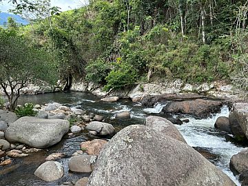 Chácara com rio de água cristalina e boa topografia