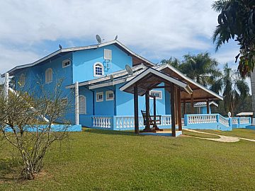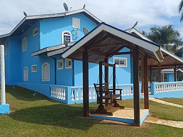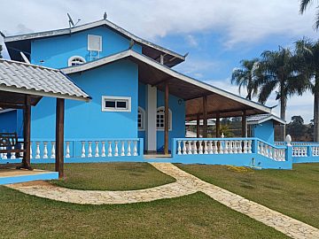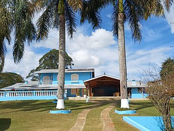 - Sede de Alto Padrão: Casa principal imponente em tom azul vibrante, com arquitetura diferenciada, varandas espaçosas e acabamento de qualidade.