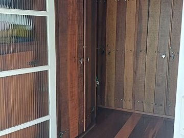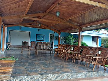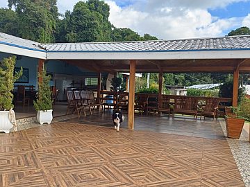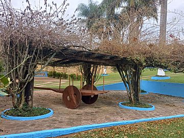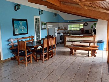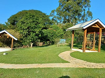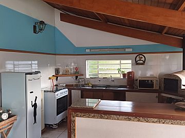 - Área gourmet coberta com churrasqueira e fogão a lenha.