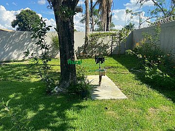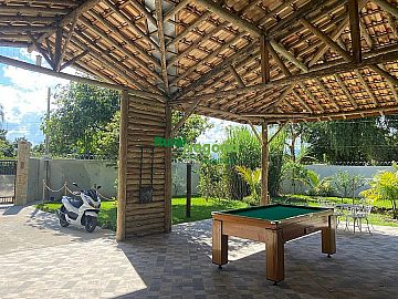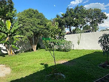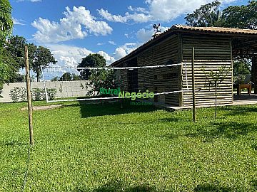 Área gramada para esportes (vôlei/beach tennis) e pomar formado.