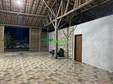 Área Coberta (300 m²): Amplo salão em estilo rústico com pé direito alto, ideal para festas, casamentos e confraternizações.