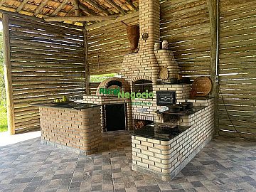 Área Gourmet Completa: Churrasqueira, forno de pizza e fogão a lenha (acabamento premium em tijolinho).