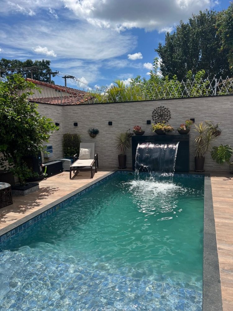 PISCINA 7x3 mt. com hidro, filtragem automática, aquecedor e cascata.